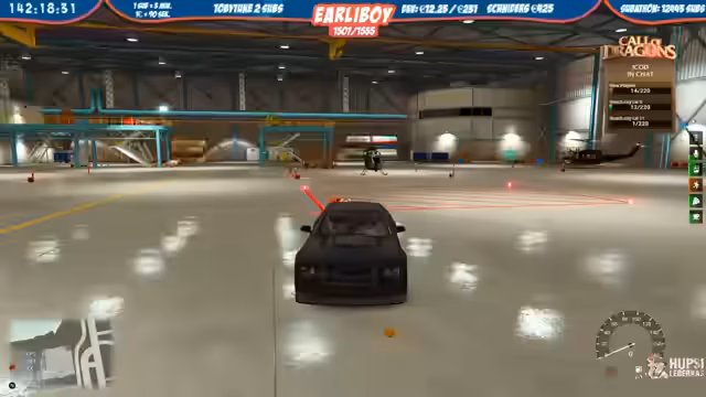 02:05:01Es werden weitere Details zum Tuning des Fahrzeugs besprochen, einschließlich Auspuff, Dach, Fahrzeugfunk, Alarmanlage und Aufhängung. Es wird erwähnt, dass ein blauer Flash in der Nähe des Jubilars gesehen wurde und ein schwarzer Jugular mit gelben Streifen und einem schwarzen Kennzeichen mit gelben Zahlen gesichtet wurde. Die Person am Steuer trug ein weißes Oberteil und einen hellblauen Fleck und telefonierte während der Fahrt. Die Gesamtkosten für die bisherigen Änderungen belaufen sich auf 2000 Dollar, wobei die Leistung noch hinzukommt. Es wird überlegt, wo das Auto geparkt werden soll, wobei die Eastside Garage als möglicher Ort genannt wird. Es wird vereinbart, dass die BF (Bestia GTS) nicht unbedingt benötigt wird und das Eastside-Treffen eine gute Option ist, da es etwas abseits und verdeckt liegt. Es wird überlegt, ob ein Bravado umlackiert werden soll, um weniger aufzufallen. Es wird ein K9 Auto bei alten Soul Train entdeckt, das beschädigt ist und verlassen wurde. Es wird festgestellt, dass die Dienstfahrzeuge einfach irgendwo stehen gelassen werden. Es wird überlegt, ob ein Revolta-Taxi als Black Car genutzt werden könnte, was aber abgelehnt wird.