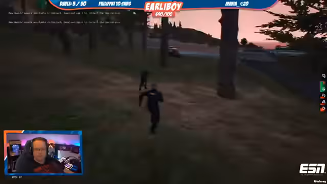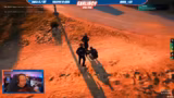 00:28:10Der Streamer und sein Charakter Joffrey geraten in eine chaotische Situation, als ein Straße ihnen unerwartet in die Quere kommt. Nach anfänglicher Begeisterung über das Tier, wird es schnell bösartig und zielt mit einem Feuerwerksraketenwerfer auf sie. Daraufhin taucht eine Polizeieinheit auf, was den Streamer in Panik versetzt. Er hat die Idee, den Strauß zu benutzen, um die Polizisten abzulenken oder abzulenken, um seiner eigenen Festnahme zu entgehen, was zu einer extrem turbulenten und unvorhersehbaren Szene führt.