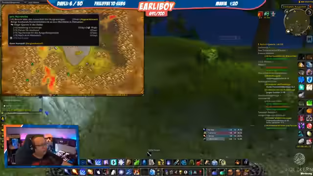07:02:38Ein anderer Spieler, 'Erli', wird in den Fokus gerückt, die den Streamer öfter aus seiner Sicht verlässt, was die Heilung erschwert. Der Streamer beschwert sich über diese Unstetigkeit. Gleichzeitig wird eine Quest kritisiert, bei der man scheinbar zum falschen Zeitpunkt geschickt wird. Es kommt zu einem Missverständnis, als der Streamer von einem Spielertod in einem Hordelager berichtet, nachdem er versehentlich in das Lager gelaufen war. Die Lösungsfindung wird als chaotisch und etwas unkoordiniert beschrieben.