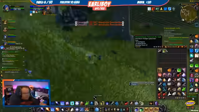 09:36:49Nach intensivem Questing über mehrere Stunden erreicht die Gruppe einen vorläufigen Abschluss. Der Streamer nutzt seinen Ruhestein, um sich zu teleportieren und Inventarplatz zu schaffen. Der Stream neigt sich dem Ende zu. Es gibt eine Abschlussverabschiedung mit den Zuschauern und ein Treffen für den folgenden Tag oder übermorgen wird angedeutet, um fortzufahren.