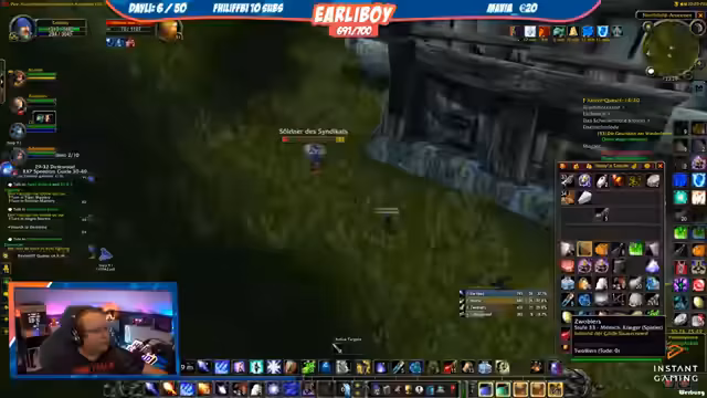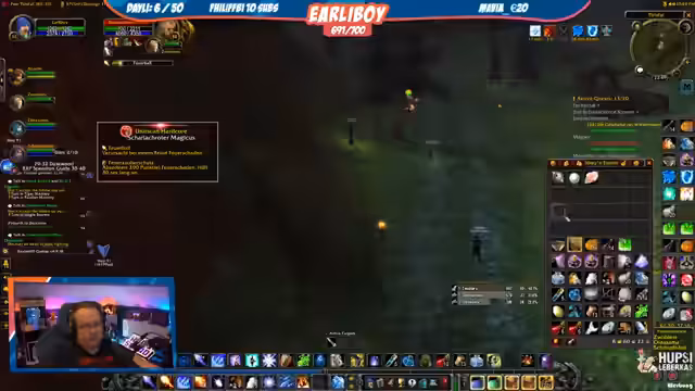 05:55:44Nachdem der Instanz-Run beendet ist, diskutiert die Gruppe ihre nächsten Schritte. Der Streamer schlägt vor, entweder eine Quest im Schlingendorn-Tal oder Elite-Quests im Alterac-Gebirge zu absolvieren, da beide Gebiete viel Erfahrungspunkte bieten. Die Entscheidung fällt zugunsten von Schlingendorn-Tal, da es näher liegt, und der Streamer startet damit, Quests anzunehmen.