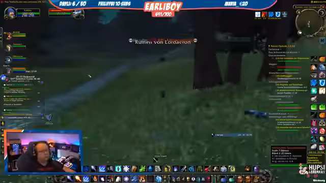 08:03:42Die Gruppe arbeitet intensiv an einer Quest, bei der der Streamer Probleme damit hat, Loot zu erhalten, während andere Mitspiiler erfolgreich looten. Es entsteht eine kurze Diskussion über die Arbeitsverteilung innerhalb der Gruppe, insbesondere zwischen den Heilern und den Tanks. Ein Vorschlag wird gemacht, eine zweite Leiste für den Heiler zu erstellen, die ausschließlich Heilzauber enthält. Dies würde die Fokussierung auf die Heilung verbessern und die Effizienz des Teams insgesamt steigern.