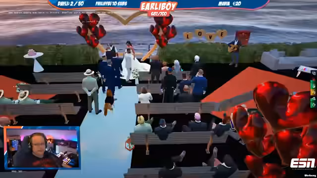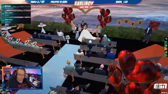 01:10:17Der Streamer plant gemeinsam mit seinen Mitspielern, eine Hochzeit zu stören. Als sie am geplanten Ort ankommen, stellen sie fest, dass die Hochzeit bereits im Gange ist, der Bräutigam Kingsley jedoch fehlt. Während der Streamer darauf besteht, dass er nicht eingreifen wird, kommen Gerüchte über einen möglichen Betrugsversuch durch den Bräutigam auf. Um diese zu klären, wird einiges Zeit aufgewendet, um sich über Kingsleys Status und seine Bewegungen zu erkundigen, was die Spannung der Situation erhöht.