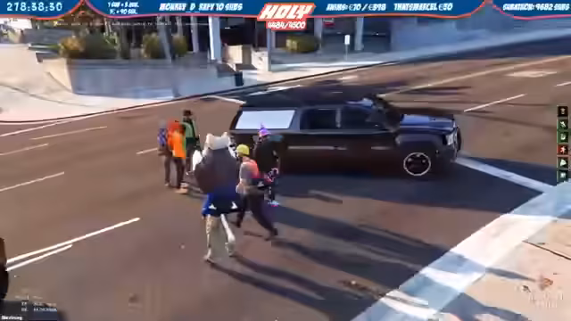 06:30:26Eine Verfolgungsjagd im GTA RP führt das Weiße Parkhaus, wo mit einem Caddy und einem Revolta manövriert wird. Dabei kommt es zu Kollisionen und Schäden an den Fahrzeugen. Die Szene endet damit, dass ein Gegner mit einem Knüppel niedergeschlagen und anschließend festgenommen wird. Parallel dazu wird die Fahrt in Richtung Süden fortgesetzt, um eine Verwahrstelle anzusteuern, wobei die Überwachung der Umgebung im Vordergrund steht.