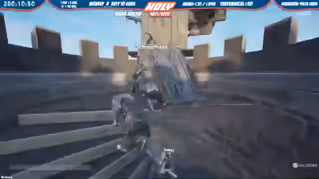 00:24:45Nach der Konfiguration des Spiels startet das Rennen in der Lobby. Die Spieler sind noch nicht mit den Steuerungsmechaniken vertraut, was zu ersten Fehlern und Verwirrung führt. Der Streamer bemängelt die Input-Lags und die gewöhnungsbedürftige Steuerung. Es kommt zu ersten gegenseitigen Schubs-Aktionen und verbalen Auseinandersetzungen. Die Kommunikation ist anfangs unkoordiniert, da einige Spieler die Spielanweisungen nicht sofort verstehen. Auch das Einladungssystem zum Server sorgt für Verwirrung, da die Einladung nicht sofort bei allen ankommt.