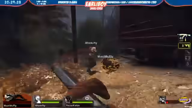 00:52:43Der gemeinsame Left 4 Dead 2-Spiel beginnt mit unvollständigen Teams und technischen Schwierigkeiten bei der Serverkonfiguration. Die erste Map, ein Wald, wird gespielt. Das Team versucht, die Map schnell zu durchlaufen, wird jedoch von Infizierten überfallen und erleidet erste Verluste. Die Kommunikation ist hektisch und zeigt die hohen Anforderungen des Spiels, insbesondere beim Umgang mit Tank-Gegnern und der Koordination des Teams.