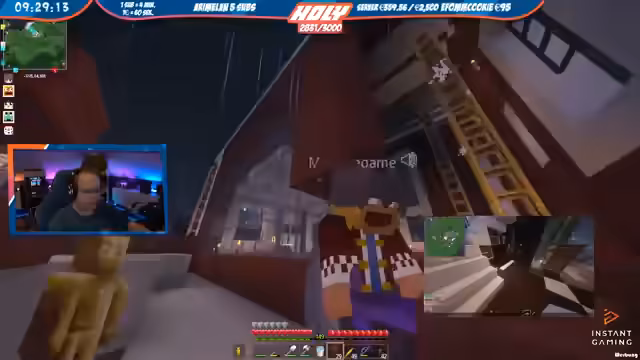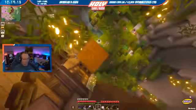 03:10:29Zander, ein anderer Spieler, taucht im Stream auf, was zu Spekulationen führt, ob ihm in Arc Raiders langweilig geworden ist. Es wird vermutet, dass er wegen der Schirme (für Farben) im Nether ist. Es folgt eine Diskussion über Spiele, in denen man alles verlieren kann, was als negativ empfunden wird, im Gegensatz zu Minecraft, wo man den Tod vermeiden kann. Zander wird gefragt, wo er sich befindet und erklärt, dass er bei einer Guardian Farm im Nether ist. Es wird über die neue Meta gesprochen, Netherportale für Farmen zu nutzen, um ein schnelleres Nachspawnen von Mobs zu ermöglichen. Zander liefert die benötigten Gegenstände und verabschiedet sich wieder. Es wird über technische Probleme wie Lags gesprochen, die kurzzeitig auftreten.
