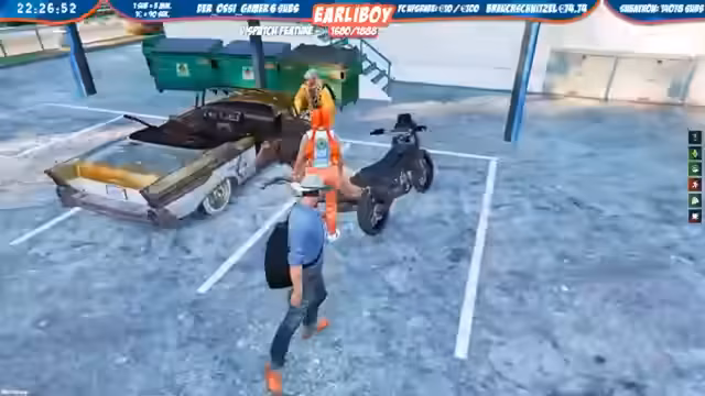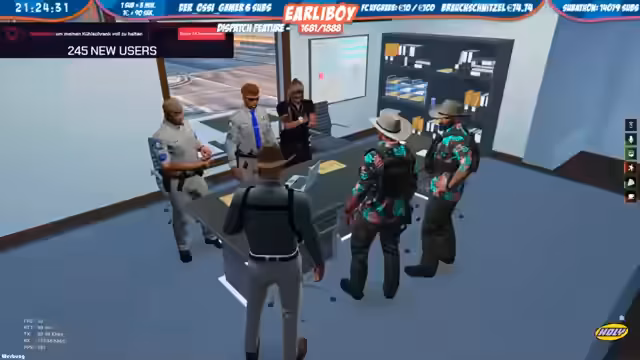 03:50:04Ein regelmäßiger Appell diente der Information über Dienstangelegenheiten. Themen waren die korrekte Handhabung von Anzeigen, Änderungen im Bußgeldkatalog, die Zusammenarbeit mit der Dispatch und die Wartung von Fahrzeugen. Während des Streams fanden mehrere Einsätze statt, darunter eine Verfolgungsjagd, die wegen des werfenden Gegenstands mit Zeitungen als ungewöhnlich beschrieben wurde. Ein weiterer Einsatz fand im Gefängnis statt, bei dem eine Durchsuchung auf Drogen stattfand und es zu Verletzungen kam.