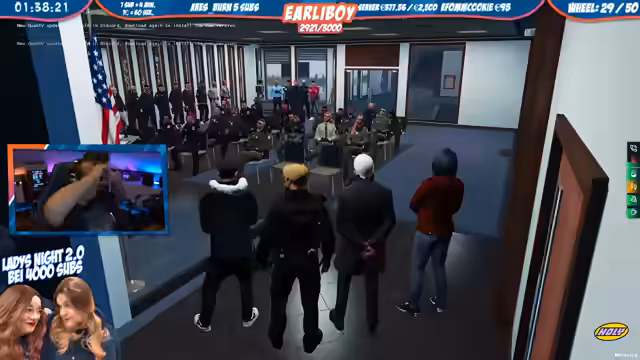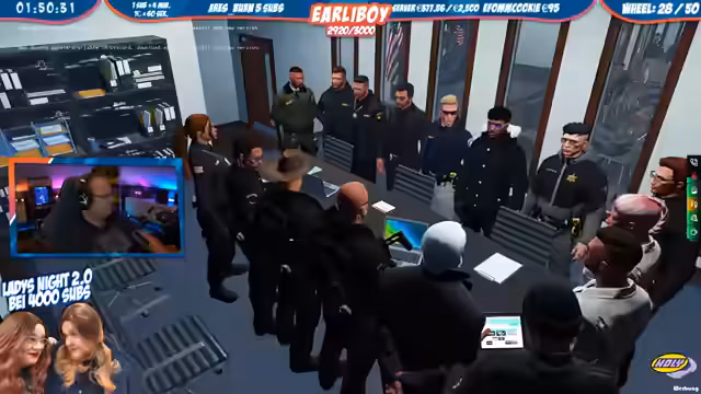 05:37:18Die Community wird spontan dazu aufgerufen, die heimliche Hochzeit von Sarutner im DOJ zu stürmen. Alle verfügbaren Polizeiautos sollen mit Blaulicht zum DOJ fahren, um an der Feier teilzunehmen. Währenddessen werden technische Probleme mit der Internetverbindung diskutiert, wobei festgestellt wird, dass viele der Beschwerden von Telekom-Kunden stammen. Persönliche Erfahrungen mit Glasfaser-Installationen und den damit verbundenen Verzögerungen werden geteilt. Die Hochzeit selbst wird als kleine, aber feine Veranstaltung beschrieben, bei der es zu humorvollen Einlagen kommt, wie dem Werfen von Schneebällen auf Sarutner, bevor die Zeremonie beginnt. Die Trauung wird durchgeführt, wobei die Bedeutung von Vertrauen, Präzision und gegenseitiger Rückendeckung in der Beziehung betont wird, Eigenschaften, die das Paar auch beruflich im Bureau of Investigation auszeichnet.