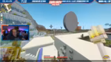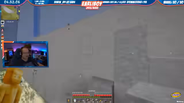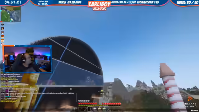 07:43:07Ein Streamer wechselt seinen Skin und ist überrascht, dass er noch im Spiel ist. Es kommt zu einem plötzlichen Blitzschlag, der die Base eines anderen Spielers komplett zerstört, was jedoch als nicht schlimm eingestuft wird. Es wird über den Aufbau und die Zerstörung von Basen gesprochen, und ein Streamer beschließt, eine TNT-Wall zu bauen, um seine Base zu schützen. Die Absprache erfolgt spontan im Chat, um Koordination zu gewährleisten.