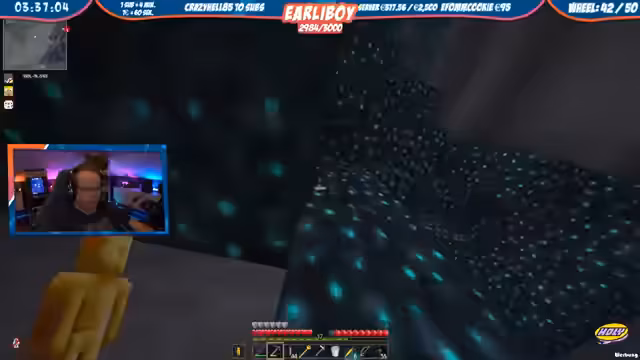 08:42:27Während des Streams wird ein außergewöhnlicher Diamanten-Run in einem riesigen Höhlenkomplex erlebt. Die Spieler sind erstaunt über die Menge an Diamanten, die sie in kurzer Zeit finden, und vergleichen dies mit früheren Craft Attack-Erfahrungen, bei denen das Farmen von Diamanten deutlich länger dauerte. Es werden mehrere Diamanten-Adern direkt im Blickfeld entdeckt, was zu großer Begeisterung führt. Die Größe und Komplexität der Höhle wird immer wieder betont, und es entsteht der Eindruck, dass der Komplex kein Ende nimmt. Die Spieler äußern sich überrascht über die schiere Menge an Erzen und schätzen, dass sie innerhalb von 20 Minuten 2,5 Stacks Diamant-Erze gefunden haben. Dieser Fund wird als der 'krasseste Dia-Run' im Leben des Streamers bezeichnet.