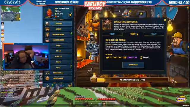 08:59:09Ein Streamer beschreibt den Beginn eines extrem erfolgreichen Dia-Farm-Runs, bei dem in nur 20 Minuten eine große Menge Diamantenerz gefunden wird. Er erwähnt die bevorstehende Craft Attack und die geringe Präsenz eines anderen Spielers auf dem Server. Die eigenen Bauprojekte stocken aufgrund von Müdigkeit, und es wird gefragt, ob die ständige Nutzung von Begriffen wie 'Sehr' aus dem Spiel das alltägliche Sprachverhalten beeinflusst.