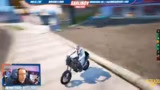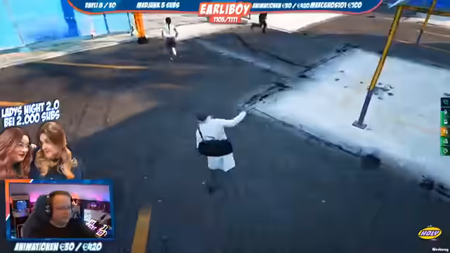01:53:00Der Stream ist geprägt von einer Reihe von chaotischen und unkoordinierten Aktionen, die in unfreiwillige Komik und Pannen münden. Dazu gehören eine missglückte Zeppelin-Flugsequenz, bei der der Streamer in Panik gerät, und ein Sturz vom Motorrad, der eine vermeintliche Ausrede für die Verletzungen erfordert. Die Szene unterstreicht den rasanten und unvorhersehbaren Charakter des Streams.
