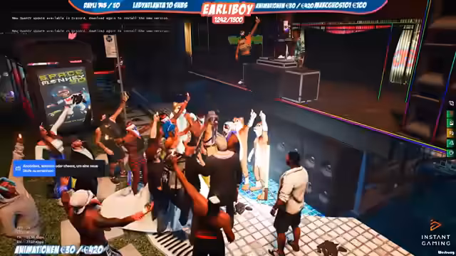 08:04:17Der Stream konzentriert sich auf die Suche nach einem DJ für die Party. Der bisherige DJ scheint Probleme zu haben oder ist nicht mehr verfügbar. Die Charaktere diskutieren über die Musiklautstärke, die Art der gewünschten Musik und die technische Organisation. Es werden verschiedene Ideen für das Musikprogramm und die Unterhaltung geäußert, während die Suche nach einem passenden DJ weitergeht.