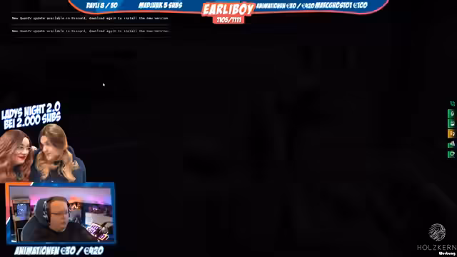 10:00:31Nach den technischen Problemen und Verwirrungen stürzt der Stream komplett ab. Es kommt zu einem 'out of memory device' Fehler und die Teilnehmer werden komplett aus der Verbindung geworfen. Der Streamer 'earliboy' bemerkt den Absturz, kann das Problem aber nicht mehr beheben. Die letzte Aktion besteht aus dem Versuch, das System neu zu starten, bevor der Stream endgültig beendet ist.