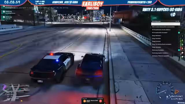 03:23:28Der Streamer ist in Rockford im Einsatz, um einen Verdächtigen festzunehmen, der einen Shop ausgeraubt hat. Es kommt zu technischen Problemen mit dem eigenen Fahrzeug, das im Shop stecken bleibt. Zudem wird über den Verkauf eines Polizeifahrzeuchs und die Höhe des Werts diskutiert.
