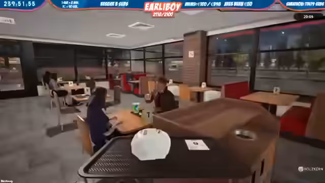 00:20:13Die Gruppe startet eine Spiel-Session in einem Fast-Food-Simulator namens 'Franzövanien'. Anfangs gibt es Schwierigkeiten mit dem Nachjoinen und dem Tutorial, die aber gelöst werden können. Schnell wird klar, dass das Spiel einige Tücken hat, wie z.B. das unsichtbare Passwort. Die Gruppe taucht in die Welt des Restaurantmanagements ein, wobei es zu einigen chaotischen Situationen kommt. Es werden Burger zubereitet, Bestellungen aufgenommen und Kunden bedient. Dabei entstehen lustige Missgeschicke und Diskussionen über die richtige Zubereitung und den Service. Es wird über die Schwierigkeiten des Spiels gesprochen, wie z.B. die Verwaltung von Ressourcen, die Einhaltung von Qualitätsstandards und die Zufriedenheit der Kunden. Trotz einiger Herausforderungen meistert die Gruppe die Aufgaben und hat sichtlich Spaß an der gemeinsamen Spielerfahrung.