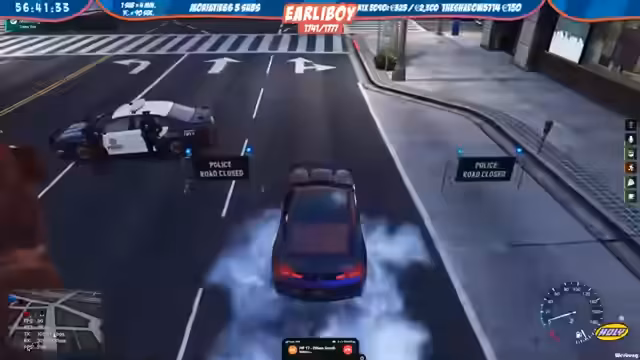 03:09:48Ein ungewöhnliches Fahrzeug ohne Türen im Straßenverkehr wird kommentiert, ohne dass dessen Herkunft oder Zweck bekannt ist. Anschließend wird ein Verkehrsunfall beobachtet, bei dem ein Polizeiauto gegen ein Schild gefahren ist. Der Streamer bietet an, mit einem Jeep Hilfe zu leisten, obwohl er zugeben muss, selbst nicht der beste Fahrer zu sein.