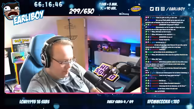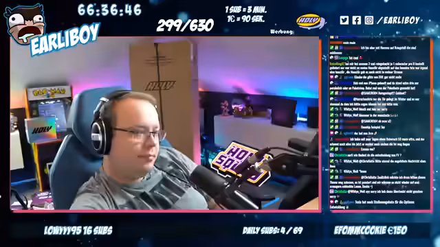 00:05:23Es wird eine neue Podcast-Episode angekündigt, wobei der Fokus auf der Vermeidung von Nebengeräuschen und Chat-Interaktionen liegt. Es wird über eine Partnerschaft mit Holy berichtet, die seit Ewigkeiten besteht. Holy ist durch seine Omnipräsenz in der Werbung bekannt und die Partnerschaft ermöglichte es, einen leeren Pappaufsteller von Holy zu erhalten, der normalerweise für Edeka-Märkte bestimmt ist. Dieser Aufsteller soll als Regal für Holy-Produkte im Hintergrund des Streams dienen, was sich jedoch als logistische Herausforderung herausstellte, da der Aufsteller unerwartet auf einer Euro-Palette geliefert wurde und der Transport aufwändiger war als erwartet. Der Spediteur zeigte sich verwirrt über die leichte Lieferung.