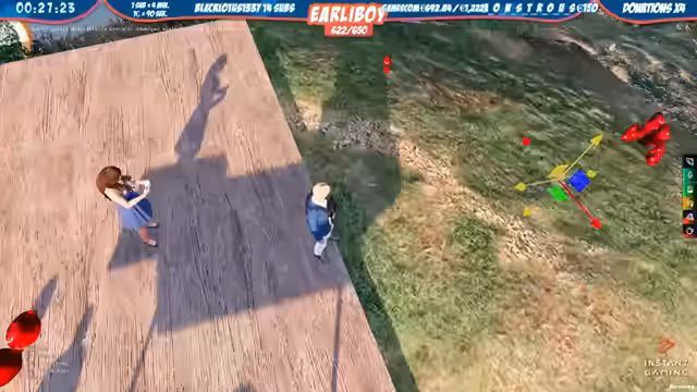 05:28:27Der Streamer arbeitet an der Gestaltung einer Hochzeitslocation mit Aussicht aufs Meer. Er beschwert sich über die fehlende Treppe und plant stattdessen eine Rampe als Zugang. Es werden verschiedene Dekorationsideen diskutiert, darunter Pavillons, Teppiche und Plattformen. Es gibt technische Schwierigkeiten beim Platzieren von Objekten und der Streamer äußert seine Frustration über den Aufwand und die eingeschränkten Möglichkeiten im Admin-Modus.