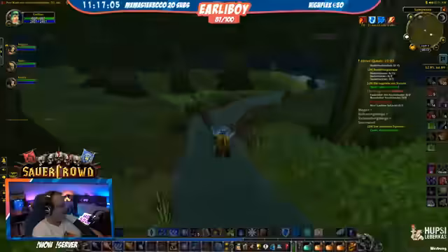 09:19:55Nach dem Level-Up planen der Streamer und sein Team die nächsten Schritte. Sie wollen den Heilergier anziehen und in den ersten Kampf gehen. Es gibt technische und organisatorische Herausforderungen, wie das Abrufen von 100 Goldblechen und das Finden der richtigen Questabgabestellen. Ein Disconnect eines Teammitglieds führt zu Frustration und Diskussionen über den schlechten Umgang, da die Person den Channel verlässt, ohne sich zu verabschieden. Dennoch versuchen sie, einen Flugpunkt in Horde-Gebiet zu holen, wobei sie auf Horde-Wachen achten müssen.