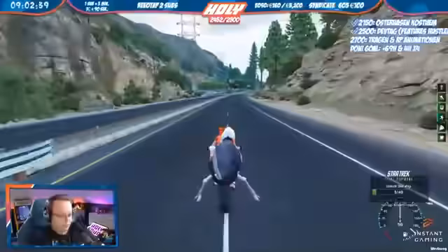 00:35:26Ein Star Trek Goal wurde für den Chat festgelegt, bei dem es um die Installation des Spiels und das Erreichen bestimmter Level geht, um Belohnungen zu erhalten. Im GTA-RP wurde Geoffrey vom Dach gerettet, nachdem er versucht hatte zu fliegen, und es gab eine Interaktion mit einem Charakter namens SIC, dessen GTA-Installation ebenfalls Probleme hatte. Es wurde überlegt, die Felgen eines Autos zu ändern und Empfehlungen für passendere Felgen gegeben. Des Weiteren gab es eine Diskussion über die Modifikation eines Taurus für einen LSPD-Officer und die Sinnhaftigkeit von Offroad-Reifen. Ein Strauß namens Geoffrey sorgte für Chaos, indem er auf einem Motorrad transportiert wurde und rote Schilder klaute. Es gab auch Überlegungen, wie man den Strauß am besten auf dem Motorrad befestigt, um weitere Eskapaden zu verhindern. Der Streamer erwähnte, dass er gute Post erhalten hat, nämlich eine Reduzierung der Krankenkassenbeiträge um 100 Euro.