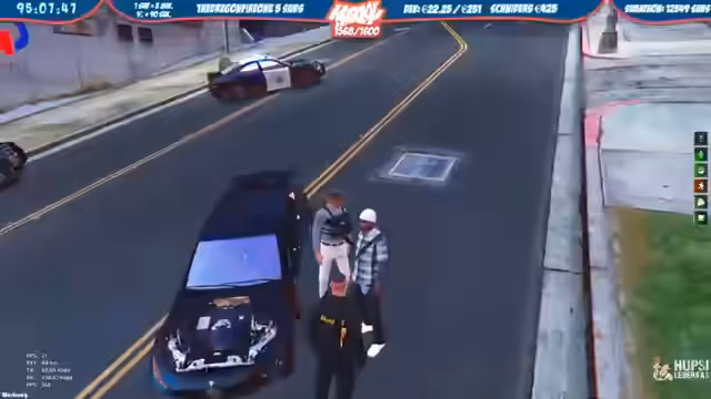 05:11:20Es wird eine Anekdote erzählt, in der ein falsch parkender Mann ein Ticket erhält und anschließend Rubbellose verkauft, mit denen der Erzähler gewinnt. Anschließend werden Serverprobleme thematisiert und wie Spieler diese durch das Öffnen des Handys oder des O-Menüs testen. Es wird erklärt, dass diese Aktionen den Server zusätzlich belasten. Abschließend wird die Planung einer Wohnwagensiedlung weitergesponnen, wobei verschiedene Standorte wie der Parkplatz beim MRPD in Betracht gezogen werden. Es wird die Idee diskutiert, eine Sondergenehmigung für die Aufstellung der Wohnwagen zu beantragen und Rickelsen mit der Umsetzung zu beauftragen. Das Ziel ist es, eine gemütliche und gemeinschaftliche Umgebung zu schaffen, in der die Bewohner sich wohlfühlen und ihren Aktivitäten nachgehen können, wobei auch die Möglichkeit besteht, auf das Dach des Nachbargebäudes zu klettern und von dort aus die Umgebung zu beobachten.