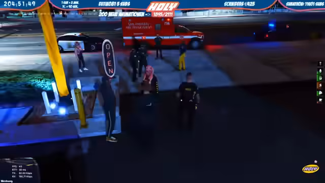 Innerhalb des GTA RP-Servers wurden diverse Polizeieinsätze durchgeführt. Es kam zu Verfolgungsjagden nach Raubüberfällen und Festnahmen von Drogendealern. Parallel dazu wurden die Pläne für neue Animationen mit den Entwicklern besprochen und ein neues Kostüm für Events vorgeschlagen.
