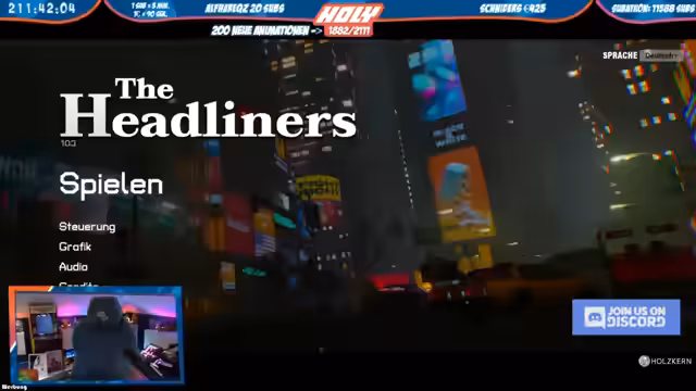 05:06:57Nachdem das Spiel 'Headliners' für mehrere Stunden gespielt wurde, wechselt der Streamer das Spiel und startet eine Session von 'Kingdom Come'. Das Gameplay wechselt von Actionhorror zu mittelalterlicher Simulation. Der Streamer interagiert mit der Spielwelt und erwähnt geplante Aktionen wie eine Verhandlung, die angeblich verschoben wurde.