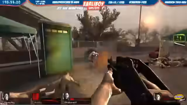 00:53:15Nach einer interaktiven Phase mit Chat-Befehlen und spontanen Aktionen wechselt der Fokus auf das Koop-Spiel Left 4 Dead 2. Der Streamer und sein Team bereiten sich auf ein Runden vor, analysieren Map-Eigenschaften wie Parish und Karneval und diskutieren Strategien zur Beschwörung von Boss-Zombies. Wichtige Rollen wie der Boomer für Ankotzen und der Charger für Angriffe werden erklärt. Das Team kommuniziert intensiv, um einen sicheren Safe Room zu erreichen und die Punktzahl zu maximieren.