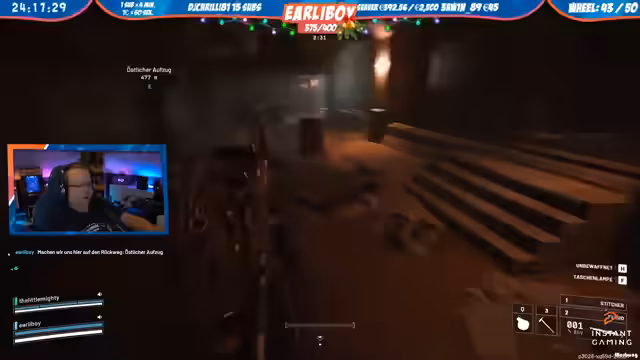 04:52:19Beim Einbruch in ein Gebäude wird die Gruppe von gegnerischen Spielern konfrontiert, die sich in den Treppenbereichen verschanzt haben. Es kommt zu heftigen Kämpfen, wobei der Streamer berichtet, dass er an die Grenzen seiner Kapazitäten gestoßen ist. Er schildert, wie er unter Beschuss geriet und nur knapp mit dem Leben davonkam, während seine Teamkameraden ebenfalls in Gefahr schwebten.