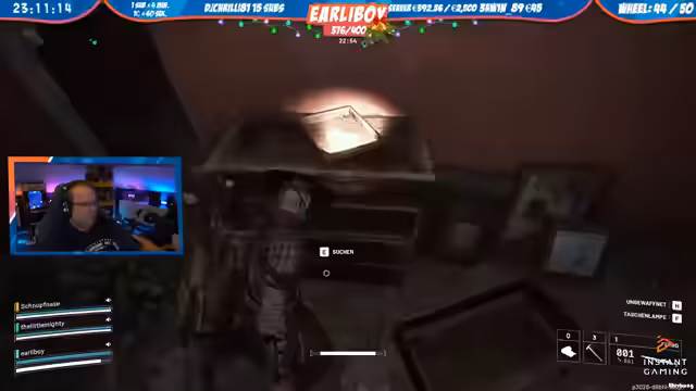 08:57:20Im Verlauf des Streams finden andauernde taktische Kämpfe um Türen und Räumlichkeiten statt. Es werden verschiedene Strategien wie das Zuschlagen von Türen, das Werfen von Ködergranaten und das Durchsuchen von Gegnern verfolgt, um an Schilder und andere Ausrüstung zu gelangen. Ein entscheidender Moment ist das Finden eines vollen Schilds nach intensivem Kampf und Beuteerwerb. Die Ausrüstung wird als wichtig erachtet, insbesondere Schilder, da sie einen entscheidenden Vorteil in den Kämpfen bieten. Die Stimmung ist dabei von Hochspannung und gezielten Taktiken geprägt.