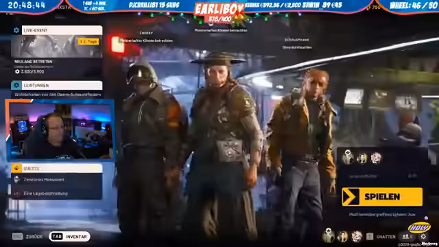 06:17:24Der Streamer beklagt sich über seine anhaltende Krankheit, die seine Spielleistung beeinträchtigt. Er erwähnt, dass er sich bei 74 Level befindet und sich unsicher ist, wie er weiter vorgehen soll, insbesondere im Hinblick auf die benötigte Erfahrungspunkte und Punkte für die Platzierungen. Er plant, eine Runde ohne Loadout zu spielen, um Ressourcen zu sparen und nur noch ein bestimmtes Ziel zu verfolgen, was auf eine Anpassung seiner Strategie aufgrund seines Gesundheitszustands hindeutet.