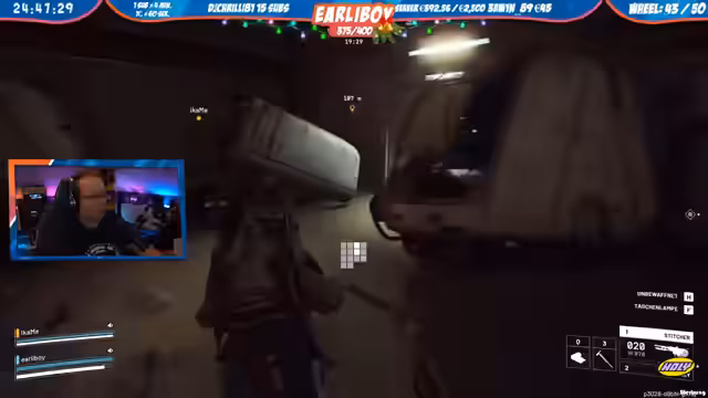 05:28:19Am Ende der Runde stellt die Gruppe fest, dass sie inventarmäßig voll beladen ist und nur noch schwer agieren kann. Es kommt zu technischen Problemen beim Versuch, eine bestimmte Aktion im Spiel auszuführen. Der Streamer versucht, den Weg zum Ausgang freizumachen, muss jedoch feststellen, dass die Aufgabe schwieriger ist als erwartet und die Gruppe koordiniert vorgehen muss, um erfolgreich zu extrahieren.