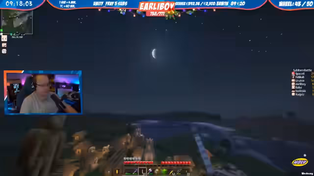 01:45:59earliboy startet das 'Sub-Item-Battle'-Event, bemerkt aber zunächst eine Zeitverwirrung (falsch angenommene Startzeit um 19 Uhr statt 17 Uhr). Nach der Klärung heißt es zusätzliche Teilnehmer willkommen, darunter Valui und andere. Das Event wird als kooperativer Wettbewerb beschrieben, bei dem Items gesammelt werden müssen. Trotz anfänglicher technischer Hürden beim Minecraft-Start (Versionsprobleme) kann das Spiel letztlich stabil geladen werden. Der Streamer zeigt sich optimistisch bezüglich der Teilnehmerzahl am Abend.