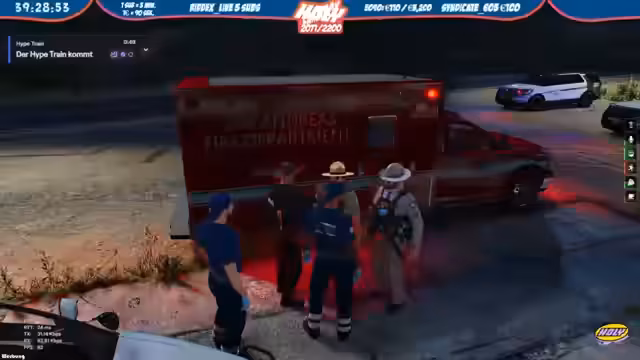 01:23:27Es kommt zu einer Auseinandersetzung mit Personen, die sich auf das Gelände des Streamers begeben haben. Es wird SWAT angefordert. Die Personen verteidigen sich. Es wird in die Luft geschossen. Es wird festgestellt, dass die Waffen keinen Schaden machen. Eine Person wird unter einer Brücke festgesetzt. Es wird ein E-Mails in einer Gasse benötigt, da eine Person bewusstlos ist. Eine Person wird in die Zellen gebracht. Es wird ein Rettungswagen benötigt, da eine Person zweimal gestürzt ist und bewusstlos ist. Der Streamer stirbt im Spiel. Es wird ein Hals benötigt. Es wird überlegt, einen Hypetrain zu starten. Der Streamer wird von einem Zuschauer geheilt. Es wird erwähnt, dass der Hypetrain bis nach dem Server-Neustart laufen muss. Es wird angekündigt, dass der Kopf und Bart grün gefärbt werden. Es wird über ein Update bei GTA gesprochen. Es wird erwähnt, dass die Lichter gefixt wurden. Es wird überlegt, was Mike gemacht hat, um die Lichter zu fixen. Es wird überlegt, ob die Helligkeit in MLO verringert wurde. Es wird erläutert, dass es Time Cycles gibt, die in MLOs verwendet werden, um diese natürlich hell zu machen. Der Time Cycle, der auch Unterwasser benutzt wurde, wurde entfernt, wodurch global alles dunkler ist, außer Bennys. Unterwasser ist wieder dunkler.