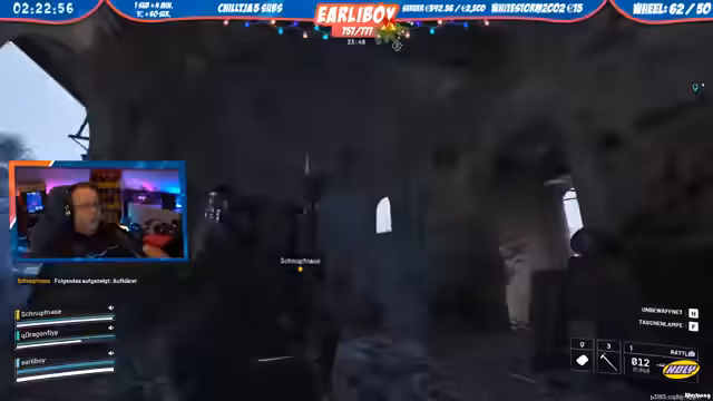 03:09:16Das Team koordiniert Angriffe auf Gegner in Apartments und Bibio-Locations, wobei Granaten und Schilde strategisch eingesetzt werden. Parallel wird ein Event besprochen, bei vier Tasten gedrückt werden müssen, um einen Bunker mit Premium-Loot zu öffnen. Der Spieler kritisiert die umständliche Mechanik, während das Team versucht, die Knöpfe unter Zeitdruck zu finden. Gleichzeitig werden Funde wie Schneekugeln und Musikboxen geteilt.