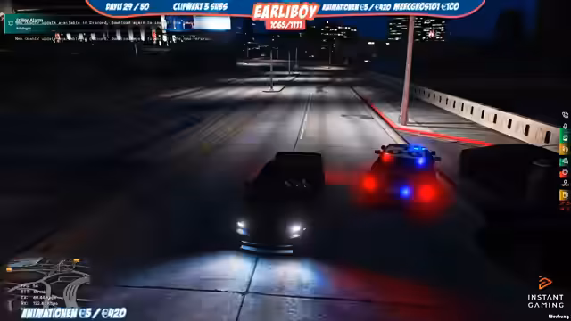 01:50:04Der Stream konzentriert sich auf eine intensive Verfolgungsjagd im Spiel. Es geht um die Suche nach einem spezifischen Fahrzeug, einem grünen Impaler, das mit einem Shinobi-Fahrer in Verbindung gebracht wird. Dabei wird ein verdächtiges Verhalten des Fahrers beobachtet, der telephoniert und eine verdächtige Körperhaltung einnimmt. Es wird entschieden, das Fahrzeug mit dem Bike zu kontrollieren und weitere Personen zur Verstärkung heranzuziehen. Ein weiteres Fahrzeug, die G-Klasse, wird ebenfalls als verdächtig eingestuft und ebenfalls in die Verfolgung einbezogen.