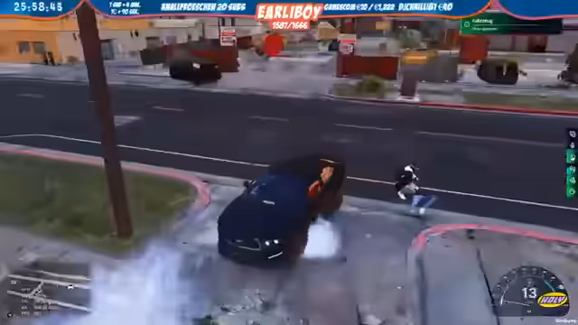 06:17:14Im GTA RP Modus kommt es zu einem schweren Verkehrsunfall. Ein Unfallverursacher stirbt an der Unfallstelle, während ein weiterer verletzter Insasse, identifiziert als Klaus, aus dem Fahrzeug geschleudert wird. Der Streamer, der den Unfall beobachtet, übernimmt sofort die Rolle eines Rettungsdienstes. Er stellt den verletzten Klaus, versorgt ihn und entscheidet, ihn mit in die Klinik zu nehmen. Gleichzeitig wird ein weiterer Verletzter auf der Straße gesichtet, der ebenfalls medizinische Hilfe benötigt.