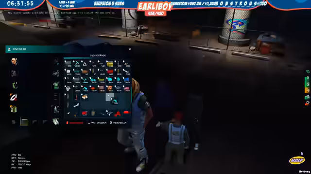 05:24:35Nach der taktischen Planung geht es logistisch um das Sammeln der Crew und die Sicherung der notwendigen Ausrüstung. Der Streamer geht mit seinem Mesa zum Northside-Schließfach, um Waffen zu holen. Teammitteile wie Victor und Bruno werden über den Funk kontaktiert und mobilisiert. Gleichzeitig werden Probleme mit dem System, etwa dass nicht alle Teammitglieder im Funk sind, angesprochen und Lösungsansätze erarbeitet, um eine reibungslose Kommunikation zu gewährleisten.