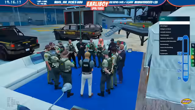 03:12:04Neben den actionreichen Einsätzen wird auch das Verwaltungswesen der Simulation thematisiert. 'earliboy' erläutert, wie man ein Fahrzeug im System registriert und den Status eines Fahrzeugs abfragt. Gleichzeitig findet ein Rollenspiel mit Zivilisten statt, bei dem die offiziellen Verfahren protokolliert werden müssen. Die Interaktionen zeigen die Balance zwischen den festgelegten Regeln und dem spielerischen Rollenverhalten im GTA RP.