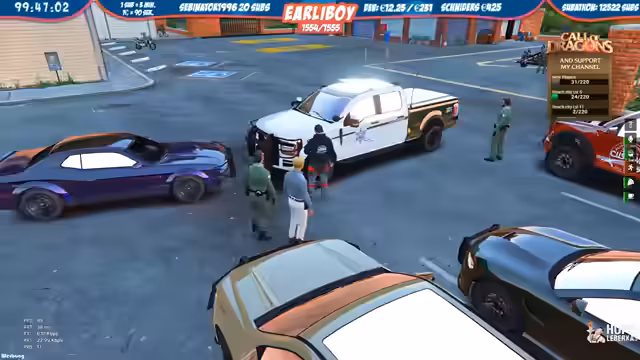08:29:07Im Spiel GTA RP wird ein Polizeieinsatz geschildert, bei dem ein Tatverdächtiger festgenommen und transportiert werden soll. Es kommt zu internen Spannungen, als ein Officer die Weisung zur Überführung des Gefangenen in die Zelle zunächst nicht umsetzen möchte und stattdessen eine Diskussion über Zuständigkeiten und Arbeitsaufträge führt. Ein weiterer Polizeieinsatz ereignet sich am San Andreas State Park, wo ein Wilderer festgehalten und der Jagdwilderei bezichtigt wird. Die Situation eskaliert leicht, als der Wilderer sich panisch verhält.