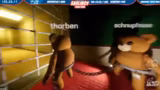 01:08:16Nachdem das Puzzle gelöst ist, muss das Team einen Weg durch einen Raum mit einem riesigen, aggressiven Gegner finden. Die Lösung ist, Blöcke zu sammeln und sie an einer bestimmten Stelle zu platzieren, um den Gegner aufzuhalten. Dies erfordert exzellente Teamarbeit, da die Spieler sich gegenseitig hochschieben müssen. Allerdings scheitert das Team oft an der Kommunikation, da einer immer zu früh handelt und alle in tödliche Fallen stürzt.