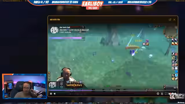 03:34:38Ein unerwartet tiefgründiges und persönliches Thema wird angesprochen: der Streamer und einige Zuschauer leiden unter Schlafstörungen und Albträumen, die durch World of Warcraft verursacht werden. Der Streamer berichtet, dass er zwischen drei und sechs Uhr nachts immer träumt, wie seine Charaktere bei gefährlichen Bossen pulls sterben. Er erwähnt auch, dass andere Spieler das gleiche Problem haben, was ihn sehr belastet und verunsichert.