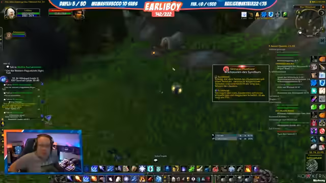 03:48:10Die Rückkehr zum Gameplay in Desolace steht im Zeichen der Kooperation. Der Streamer und sein Partner versuchen, eine Gruppenquest zu absolvieren, bei der ein Dämon aus einer Höllenkugel befreit und dann getötet werden muss. Es kommt zu technischen Problemen, wie dem Stummschalten des Streamers, und zu Missverständnissen bei der Questabgabe, die das Team zwingt, von vorne zu beginnen. Trotzdem meistern sie den Kampf letztendlich erfolgreich.