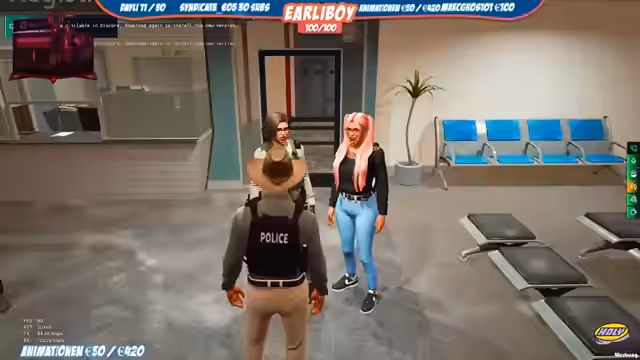 02:56:02Im Stream werden verschiedene Straftaten und Verdachtsfälle thematisiert, insbesondere um die Identität von Kurt, der sich als jemand anderes ausgibt. Es werden Indizien wie eine Miki-Maus-Stimme diskutiert, aber ohne konkreten Beweis. Die Gruppe ist auf der Suche nach Kurt, nachdem er sich in Ermittlungen eingemischt hat, und untersucht Tatorte wie eine Bank. Es gibt auch einen Vorfall im Verhörraum, bei dem eine plötzlich funktionierende Tür für Verwirrung sorgt.