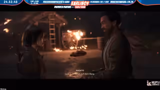 00:24:26Es wird beschlossen, einfach durchzurennen, wobei der Streamer Anweisungen gibt, wo es langgeht und worauf zu achten ist. Es wird betont, dass man oben im Spiel durch einen Charger instant getötet werden kann, wenn man ins Wasser geschleudert wird. Ein Plan wird geschildert, wie ein Spieler Maggie ins Wasser geschleudert hat, was für Irritationen sorgt. Es wird die Wichtigkeit betont, auf Calls zu achten und nicht auf eigene Faust zu handeln. Es wird festgestellt, dass man weiter gekommen ist als zuvor, obwohl weniger Punkte vorhanden sind. Es wird analysiert, warum man nicht so viele Punkte hat. Der Plan wird wiederholt und erklärt, warum alles 25 Mal wiederholt werden muss. Es wird erklärt, dass das aktuelle Level das zweite ist, aber man auch noch mal im vierten Level sein wird, um das fünfte Level zu spielen. Danach geht es zurück zum Anfang.