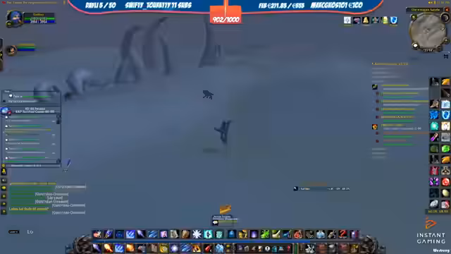 03:00:43Die Praxis des Multiboxings wird erklärt, bei der der Streamer zwei Charaktere gleichzeitig in zwei verschiedenen Dungeons steuert. Dies wird mit zwei separaten Accounts und dem schnellen Wechsel zwischen den Spiel-Fenstern realisiert. Die Herausforderung besteht darin, Ressourcen und Mob-Aggression zu verwalten, ohne dass die Charaktere gegenseitig stören. Der Streamer hat bereits einen Dungeon mit einem Hunter und einem Warrior parallel erfolgreich absolviert und als machbar empfunden.