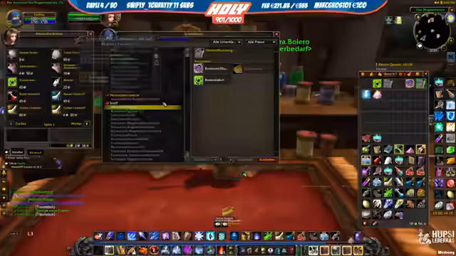 00:58:00Der Streamer kümmert sich um das Inventarmanagement, indem er Gegenstände wie gepfändete Karten und Saftige Köder sortiert. Es wird erklärt, wie man überschüssige Gegenstände verarbeiten und abgeben kann. Das Gespräch dreht sich um den Wert von verschiedenen Buffs und Konsumables für bevorstehende Dungeons und Raids. Der Streamer erwägt, ein bestimmtes Item zu überarbeiten, und überlegt, wie er seine Spielzeit und seine Ressourcen effizient für das angestrebte Level nutzen kann, während er auch die Verfügbarkeit von Gruppen im Dungeon-Finder bewertet.