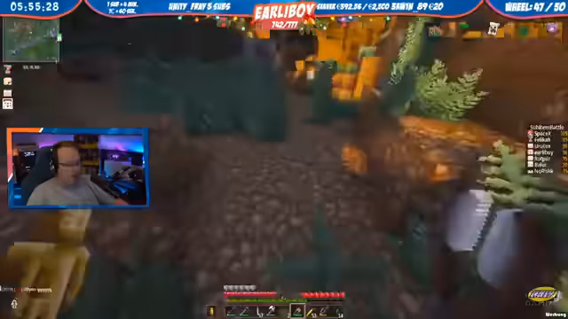 03:14:51Die Spieler arbeiten eng zusammen, um gegenseitig fehlende Items zu beschaffen. Ein Spieler (Joe) meldet sich aus gesundheitlichen Gründen ab, während andere Kooperationen (z.B. zwischen Space und Joe) erwähnt werden. Der Streamer reist über weite Strecken (11.000 Blöcke im Nether), um eine Woodland Mansion zu erreichen, in der mit 20%iger Wahrscheinlichkeit eine gesuchte Disc spawnen kann. Es folgen detaillierte Absprachen über Item-Beschaffung, wie das Herstellen von Wachs durch Bienen oder das Finden von seltenen Pflanzen für Farbstoffe.